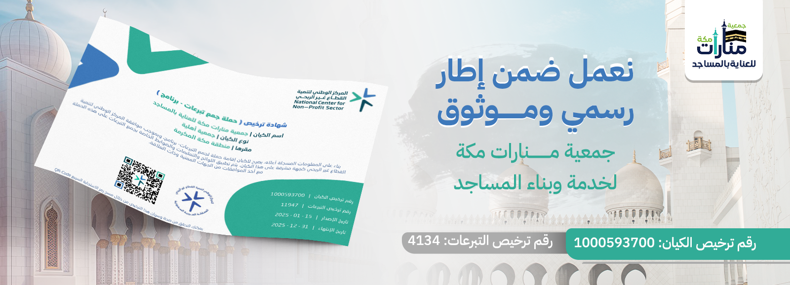 بصدقة يسيرة خلّد أجرك في بيوت الله وامتلك وثيقة باسمك لبناء وخدمة المساجد مدى الحياة